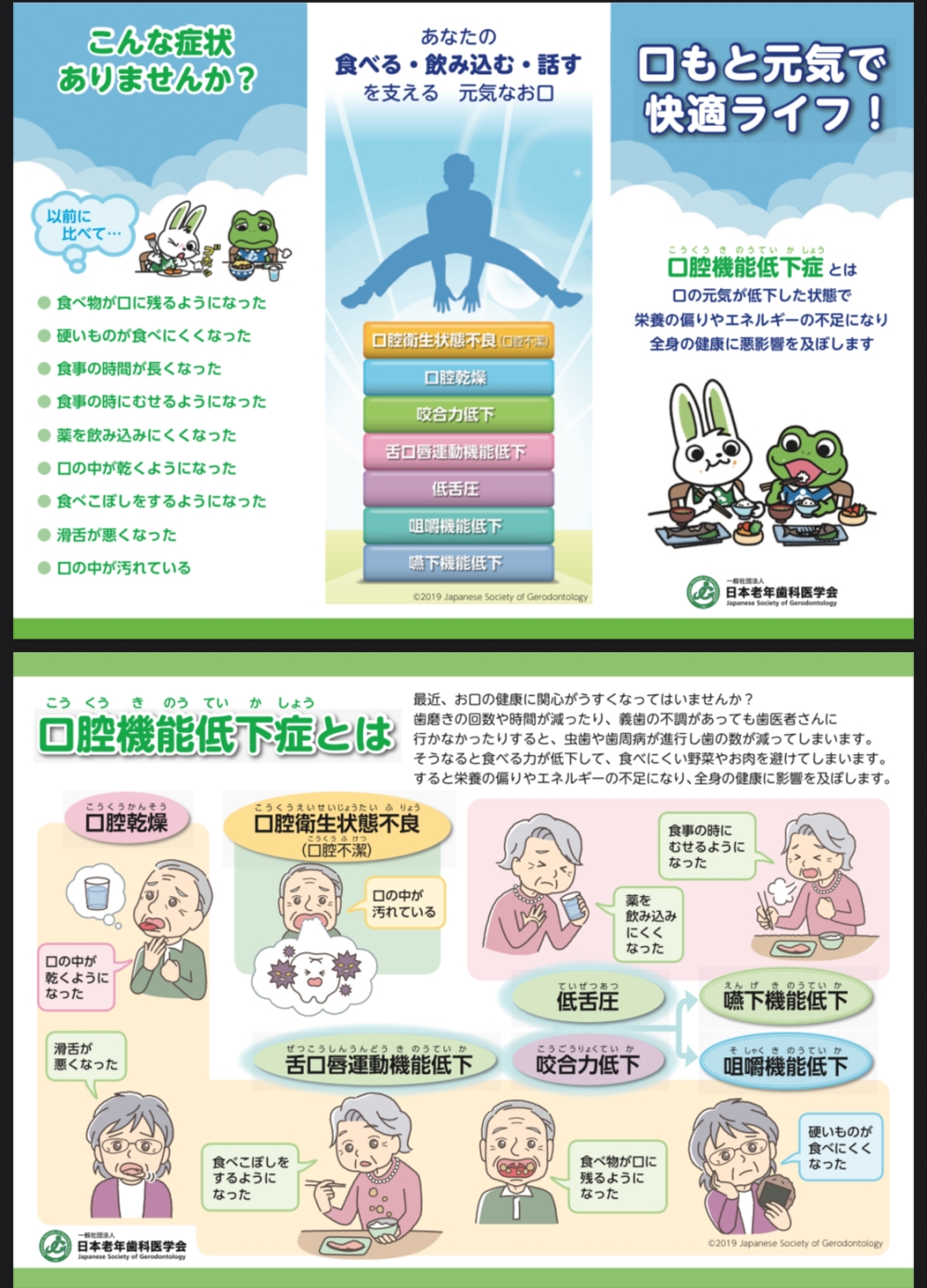 口腔機能低下症とは、咀嚼や嚥下(えんげ:食べ物や飲み物を飲み込むこと)、唾液などの口腔内の機能が低下していく疾患です。